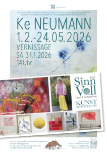 Dauer: Ke Neumanns Kunst ist vom 31.1. bis 24.05.2026 in Hof SinnVoll ausgestellt